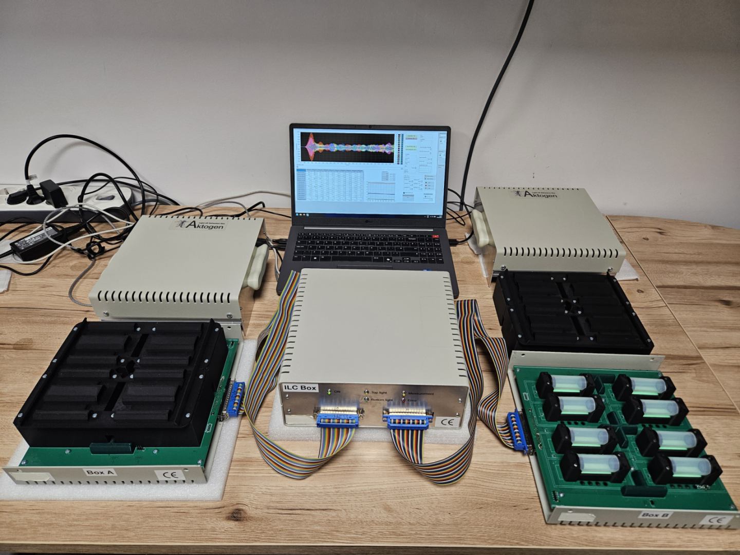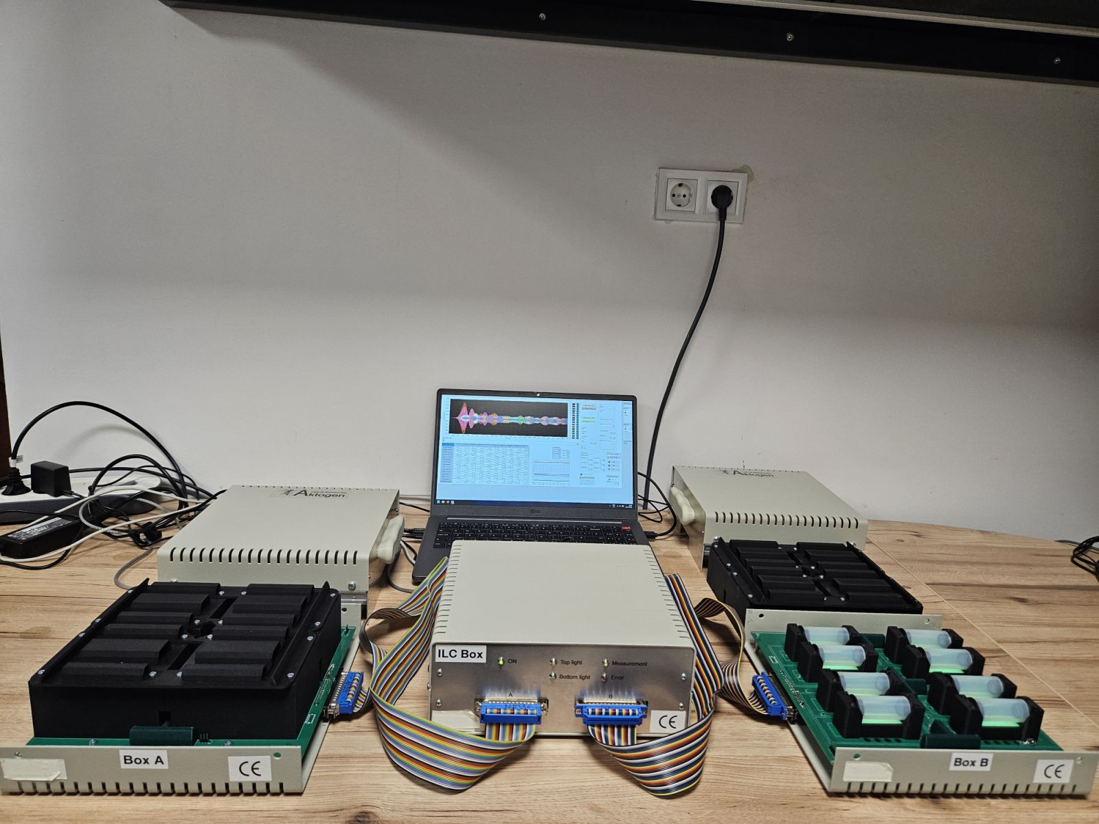 - 2x fényingeres viselkedési doboz, összesen 16 darab tesztkamrával. Minden tesztkamra egység zöld fényforrással, szilikon viselkedési kamrával, kamránkként 2 darab mikrofonnal és 1 darab hangerősítővel van felszerelve. Az egység hőmérséklete passzív hűtéssel kerül szabályozásra.